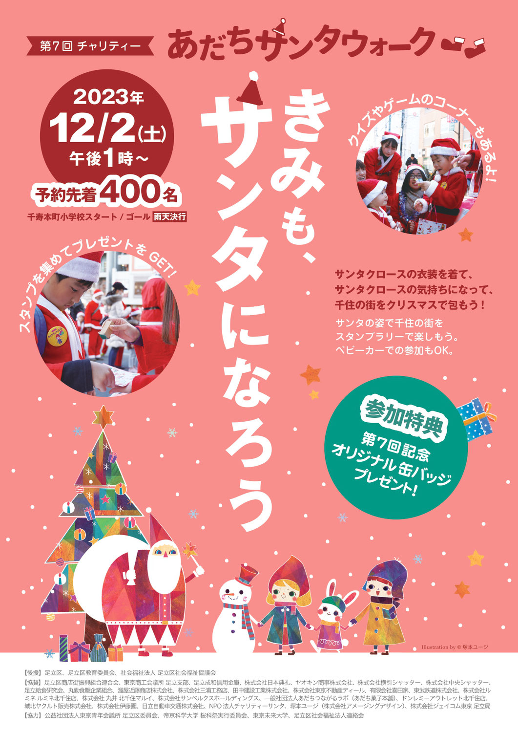 12月2日(土)開催の、あだちサンタウォークのご案内です。