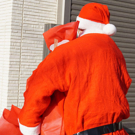 1217日(日)、足立区の遺児家庭やひとり親家庭等にサンタが訪問し、30人のお子さんたちにプレゼントを届けました。